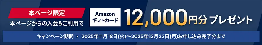 本ページからの入会・利用でAmazonギフトカード12,000円分プレゼント!